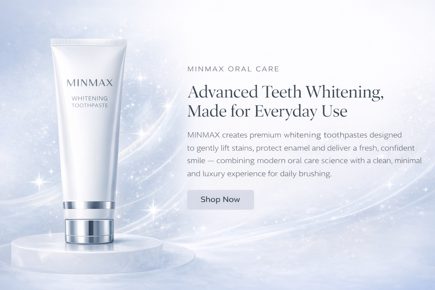 MINMAX creates premium whitening toothpastes designed to gently lift stains, protect enamel and deliver a fresh, confident smile — combining modern oral care science with a clean, minimal and luxury experience for daily brushing